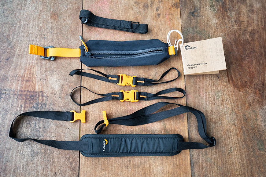 The pack comes with what Lowepro calls a “GearUp Accessory Strap Kit”, which literally allows you to attach the ICU to you or the pack in just about every way imaginable.