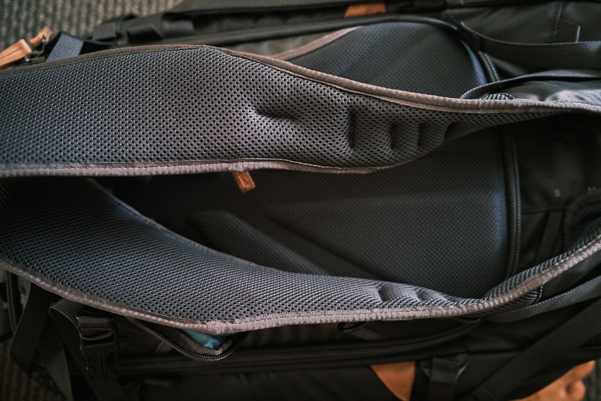 The back panel itself is soft, well ventilated and feels great on your back.