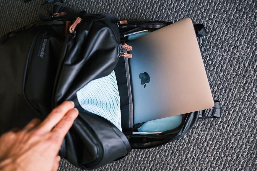 Laptop can be accessed from the top of the bag too.