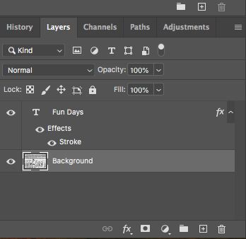 In the Layers Panel, a Layer Styles Effect will be added beneath the Text Layer.