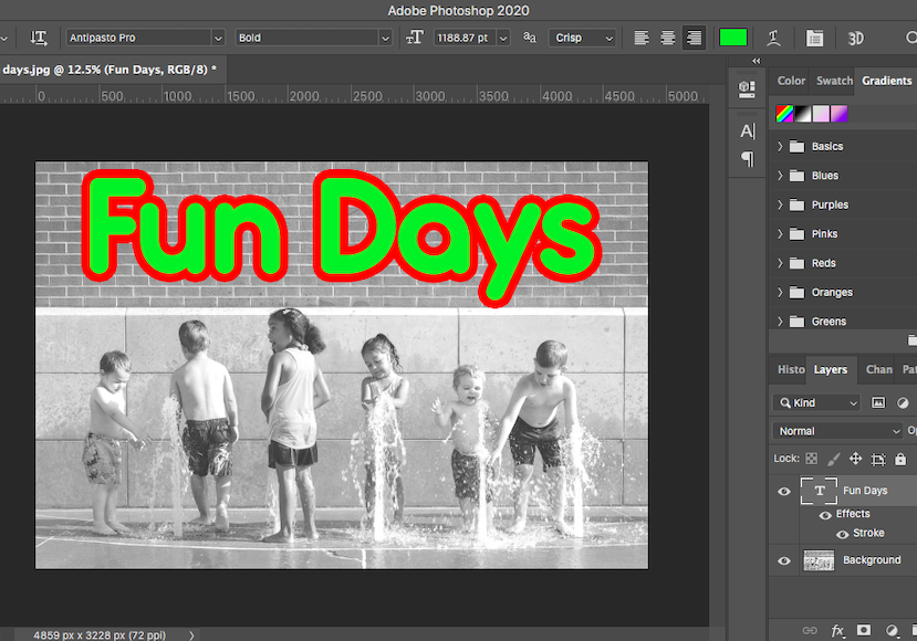 Now that you’ve created the text, you can begin to add the text outline. To do this we need to create a Stroke Layer Style.
