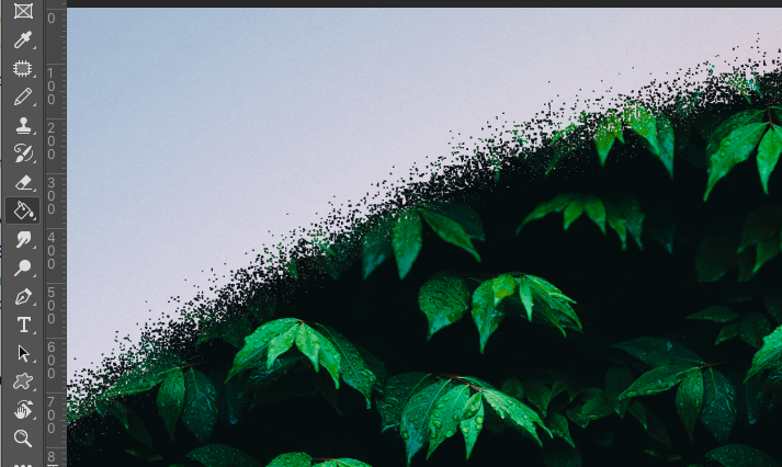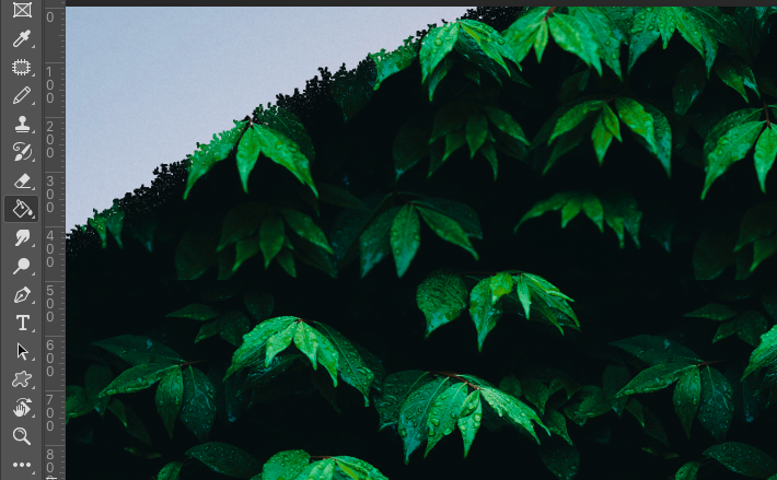 How much of the canvas the Paint Bucket Tool will fill will be dependent on how much of the area is the same color – it could fill the entire document or only one pixel.