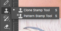 Select the Clone Stamp Tool from the Toolbar or for the keyboard shortcut Press S.