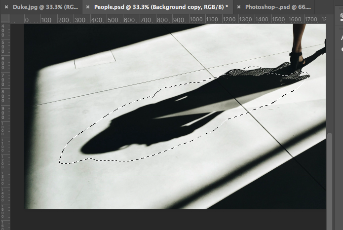 Click on the canvas and drag the Patch Tool to make a selection around the shadow you wish to remove.