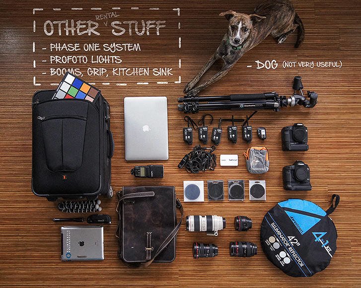It’s always interesting to see what (non-photography related) gear photographers need to carry to carry out their jobs.